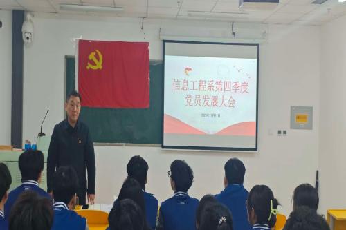 为进一步夯实基层党组织根基,传承红色基因,壮大党员队伍,不断提升党支部的凝聚力与战斗力,11月11日,信息工程系学生党支部于松阳校区A教407教室召开支部党员大会,专题研究接收李泽阳等22名同志加入中国共产党事宜。信息工程系党总支书记高洁、副书记张静、支部全体党员出席大会,会议由学生党支部书记杜晶晶主持。